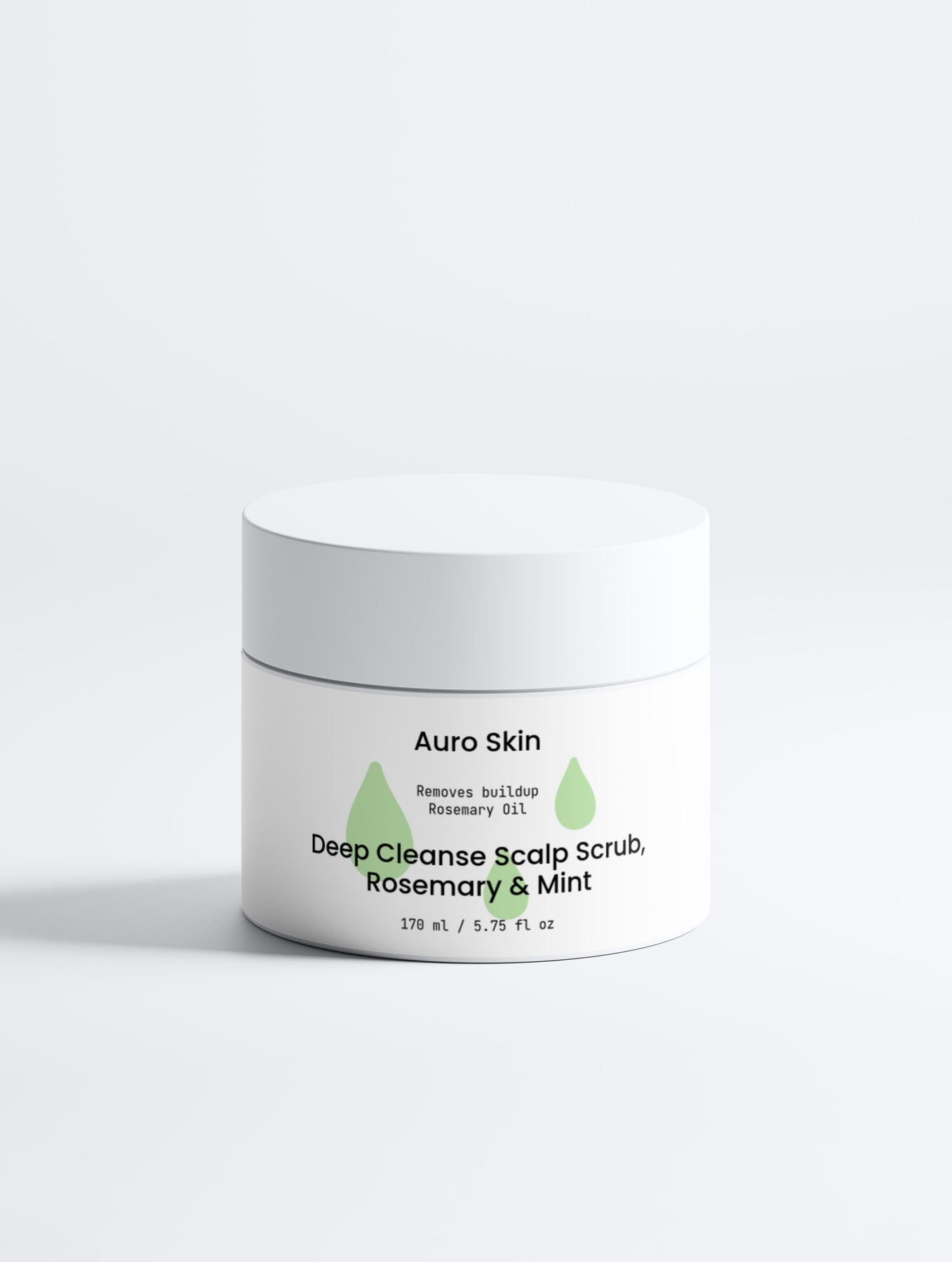Keywords: Deep Cleanse Scalp Scrub, Rosemary & Mint Scalp Scrub, exfoliating scalp treatment, hair detox scrub, natural scalp care, dandruff prevention, invigorating scalp scrub, Auro Skin.